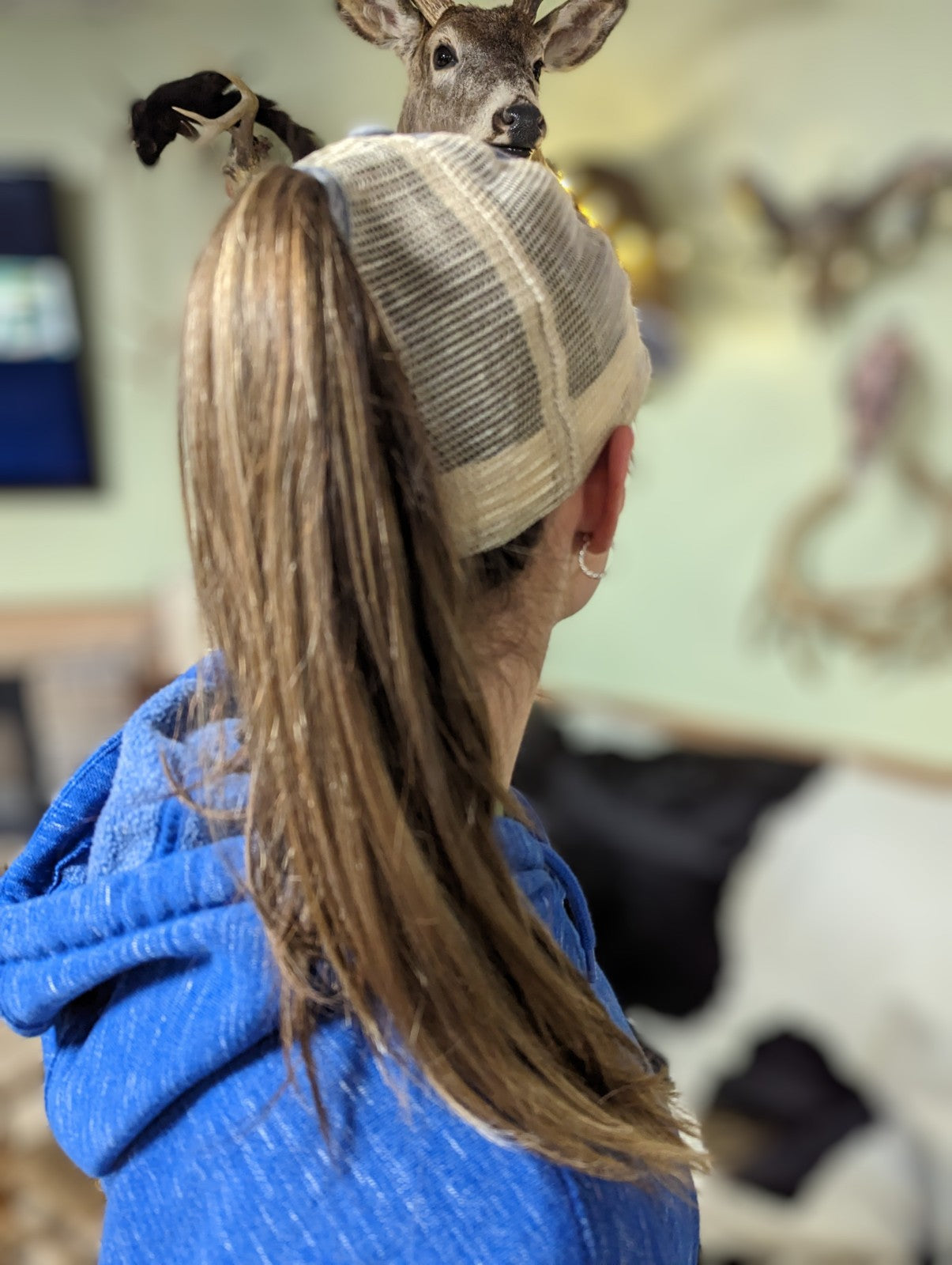 Ladies just for you. Now you can show off in your own Forget Genetics wear designed for you!. We have a Pony Tail leather patch ball caps and also leather patch white and cream beanies with a ball on top.