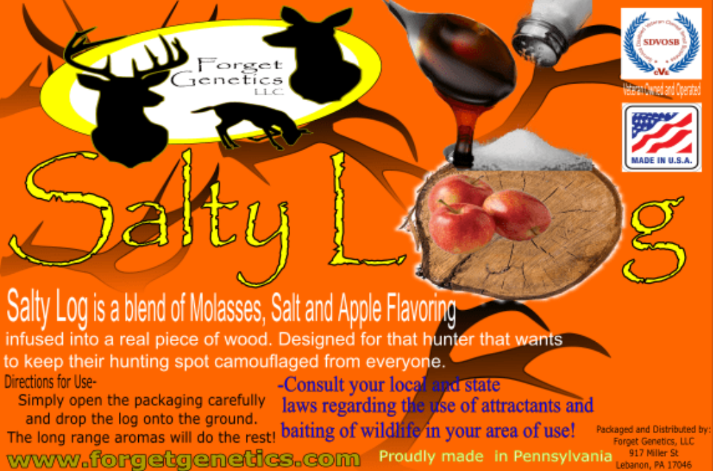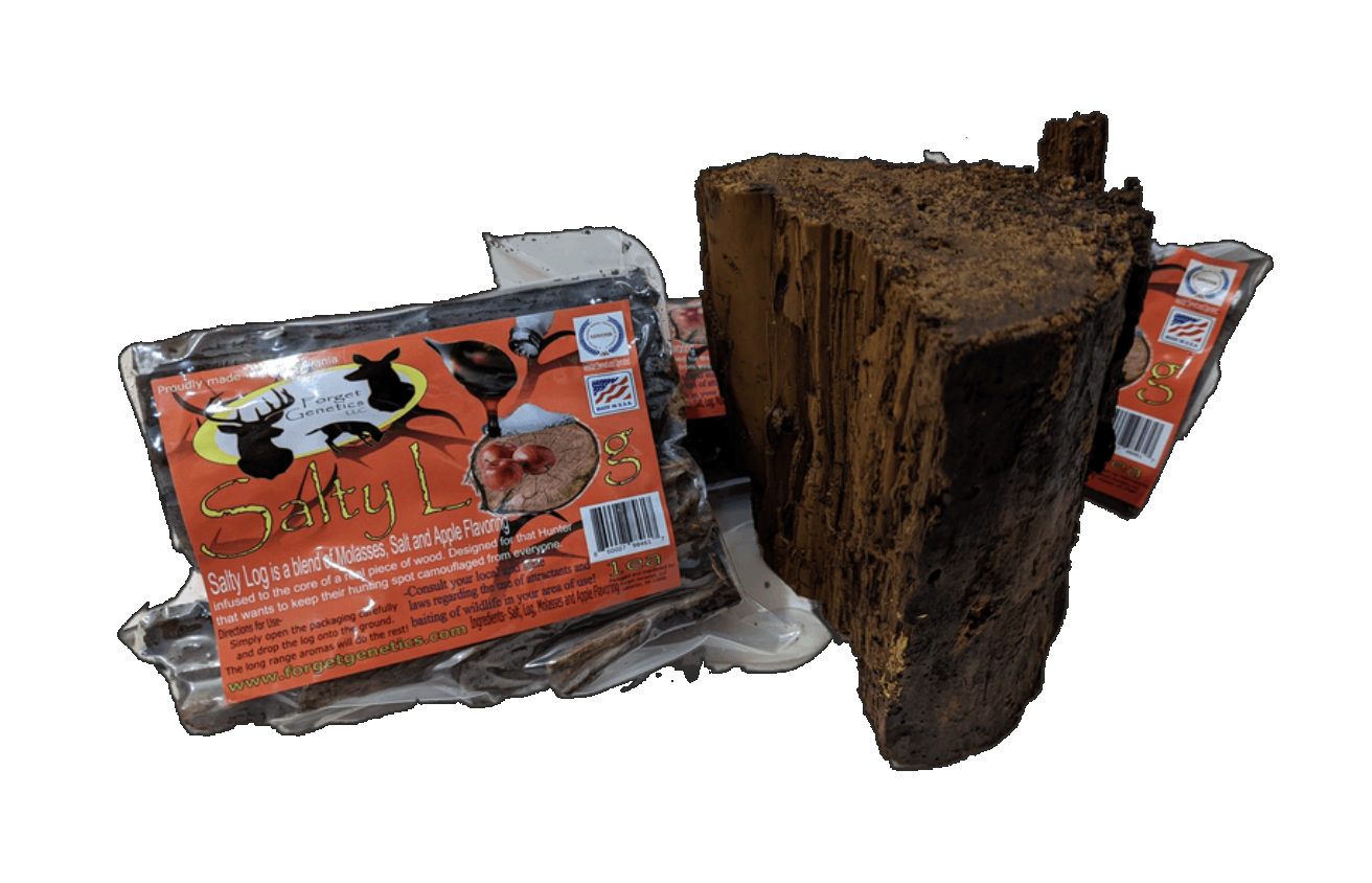 The Original Salty Log is a real piece of wood that we used our patent-pending process to infuse real Molasses, Salt, and apple flavor into the fibers of the log. Not just soaked in a bucket. We have been able to master the process of penetrating the wood fibers with our solution. The molasses acts as a coloring agent and also a flavor. The apple and salt also act as an attracting agent. We have created the camouflaged triple whammy. In each package, you will receive either a single log or multiple. We try and fill the package for you.